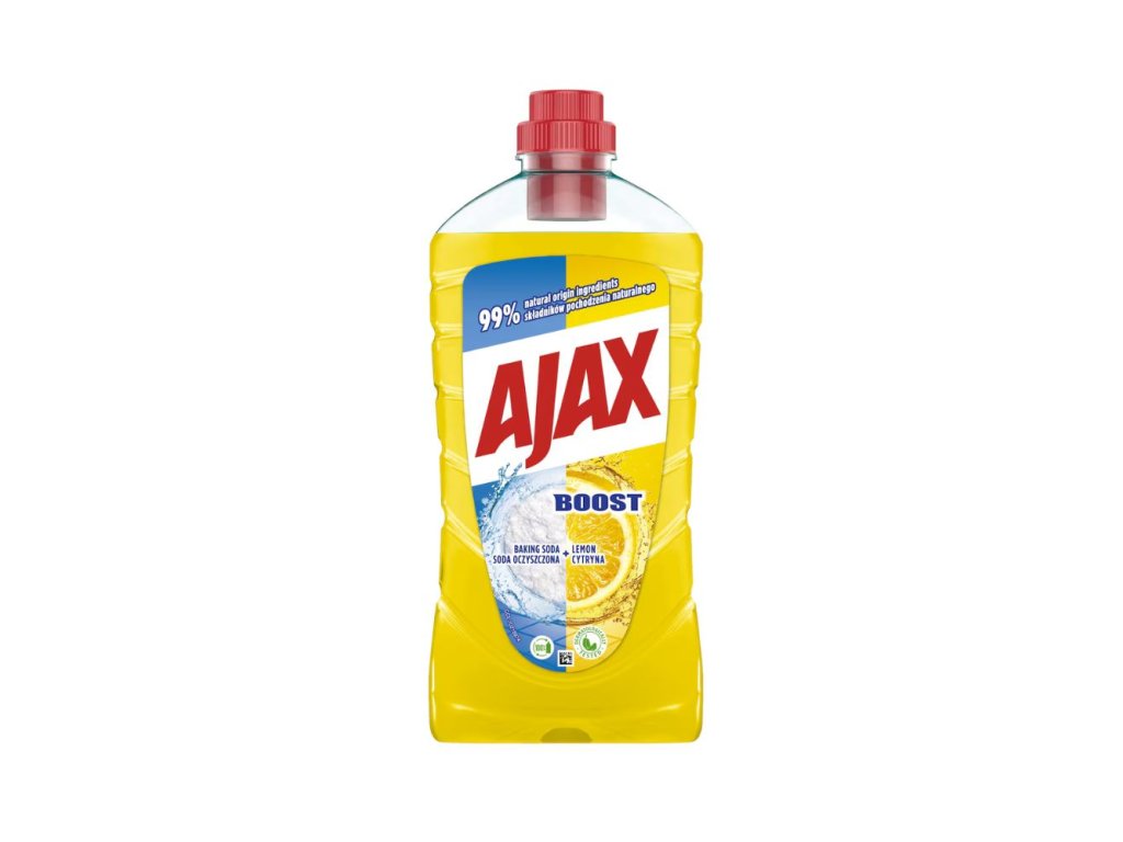 AJAX na podlahu Baking Soda & Lemon 1 l je univerzálny čistiaci prostriedok s aktívnou sódou na podlahy aj umývateľné povrchy v domácnosti. Čistí do hĺbky bez šmúh a bez nutnosti oplachovania, je šetrný aj k citlivejším povrchom (napr. mramor, keramika) a zanechá sviežu citrónovú vôňu.