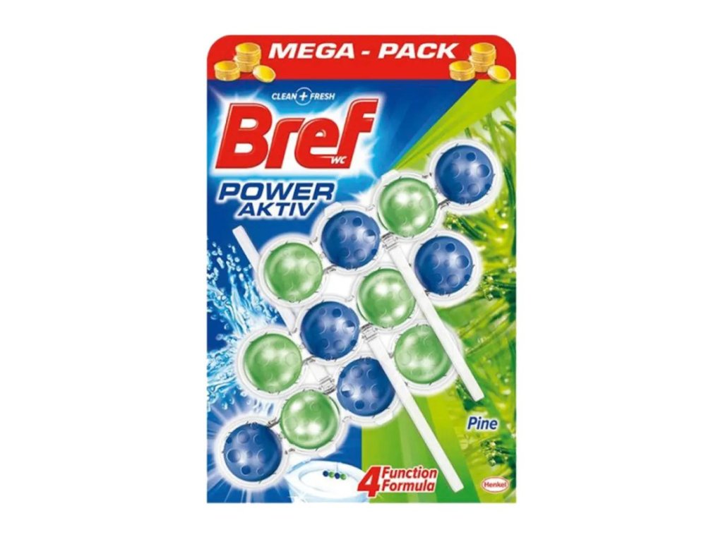 Bref Power Aktiv Pine je závesný WC blok s vôňou borovice, ktorý pri každom spláchnutí vytvára čistiacu penu a pomáha udržiavať toaletu sviežu a čistú. Zloženie so 4 funkciami podporuje ochranu pred vodným kameňom aj usadzovaním nečistôt. V balení sa nachádzajú 3 ks.