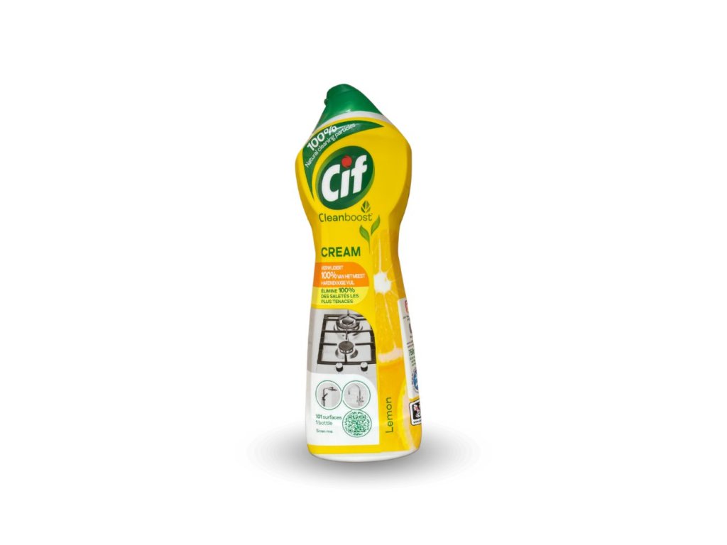Cif Cream Lemon 500 ml je krémový čistiaci prostriedok s citrónovou vôňou na odolné nečistoty v kuchyni, kúpeľni aj celej domácnosti. Vďaka mikročasticiam a odmasťujúcim látkam pomáha rýchlo odstrániť mastnotu, pripáleniny aj usadeniny a zároveň sa ľahko oplachuje. Objem balenia je 500 ml.