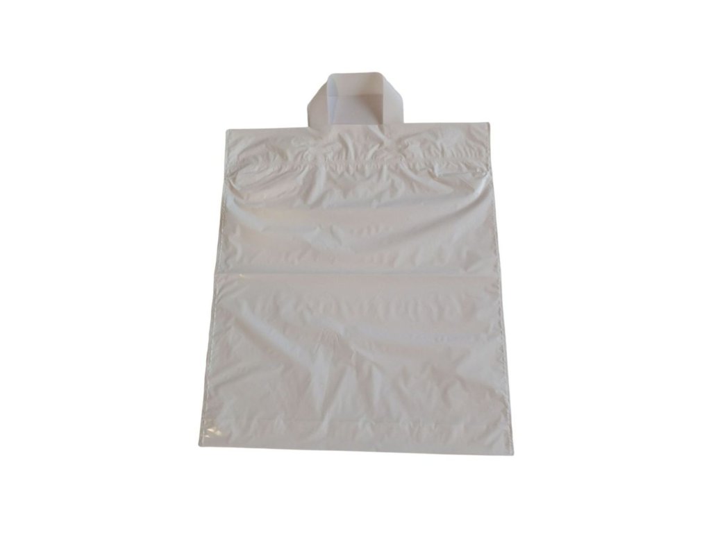 Biela LDPE taška 38 + 5 × 46 cm – balenie 50 ks. Pevná a odolná nákupná taška vhodná na potraviny a bežné nákupy v predajniach či gastro prevádzkach.