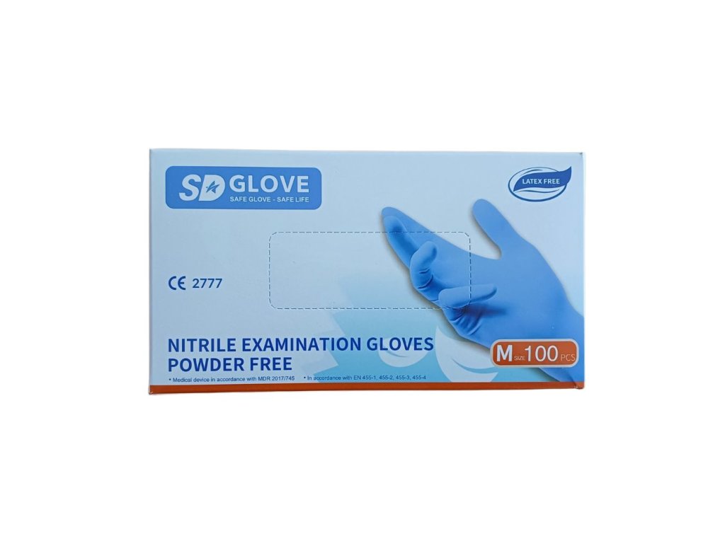 Jednorazové nitrilové rukavice, veľkosť M, modré – balenie 100 ks. Pevné a elastické, odolné voči prepichnutiu a vybraným chemikáliám, bez latexu; vhodné pre potravinárstvo, hygienu, kozmetiku aj upratovanie.