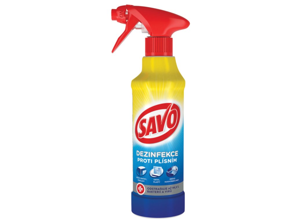 SAVO proti plesniam 500 ml s rozprašovačom je dezinfekčný prípravok na účinné odstránenie plesní, húb, rias a kvasiniek v domácnosti. Praktický rozprašovač uľahčuje aplikáciu aj na ťažko dostupné miesta, pričom prípravok zároveň čistí a vybieli napadnuté povrchy. Je vhodný pre kúpeľne, škáry, silikónové tesnenia, obklady aj steny.