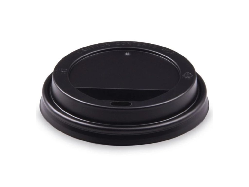 Vypuklé čierne viečko na pohár Ø90 mm – balenie 100 ks. Spoľahlivo tesní a uľahčuje hygienické podávanie teplých aj studených nápojov.